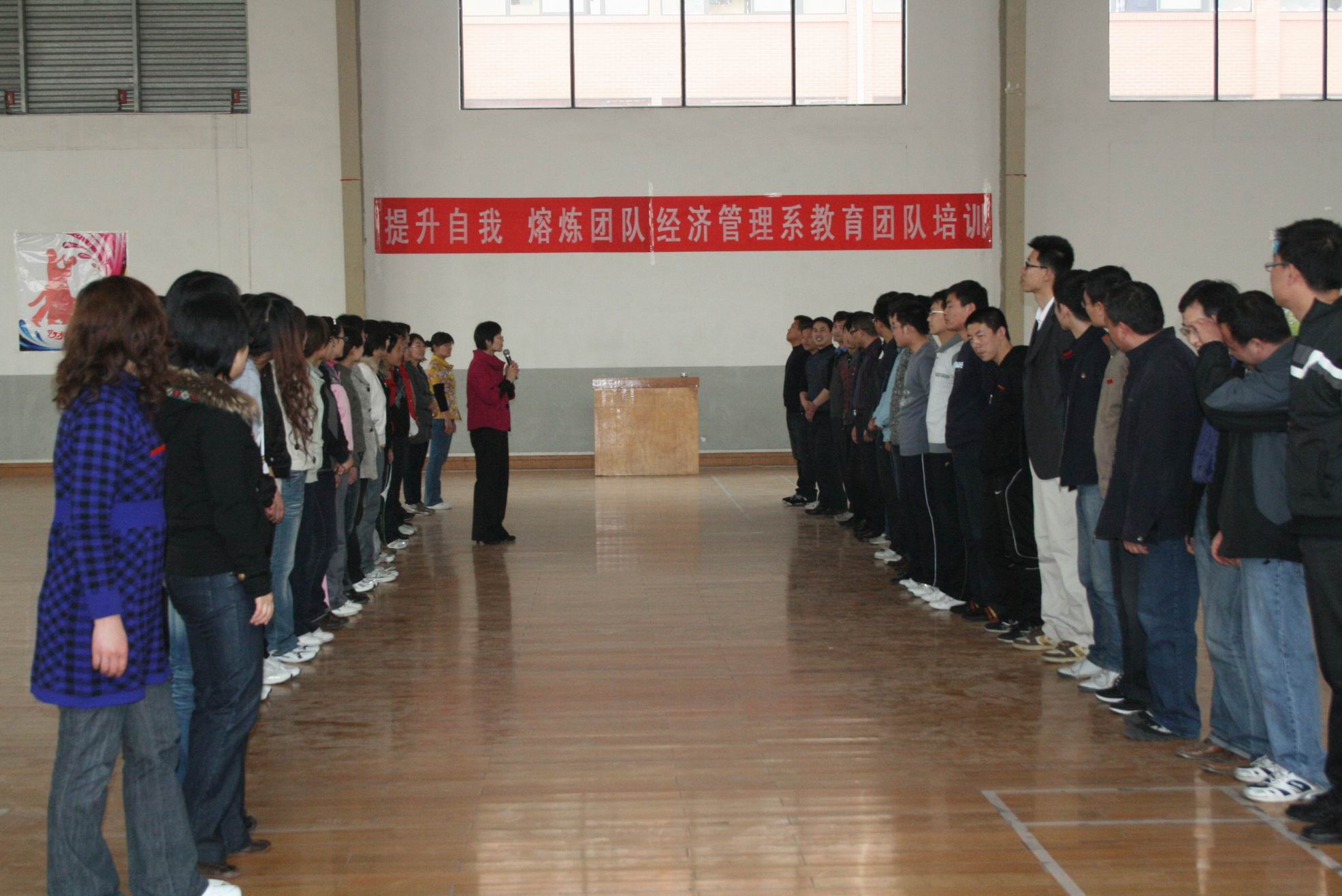2010年4月17日下午2:00—5:00,华宇学院工会经济管理系分会在学院综合训练馆,对经济管理系整个教育团队进行了主题为“提升自我 熔炼团队”的培训,参加人数60多人。该培训打破以往的培训模式,大胆采用体验式的拓展培训方式,让全体教师及学生管理人员在游戏和参与中体会到“责任” 的深刻内涵,理解了“团队”的无穷力量、领悟了“凝聚”的深远意义。
