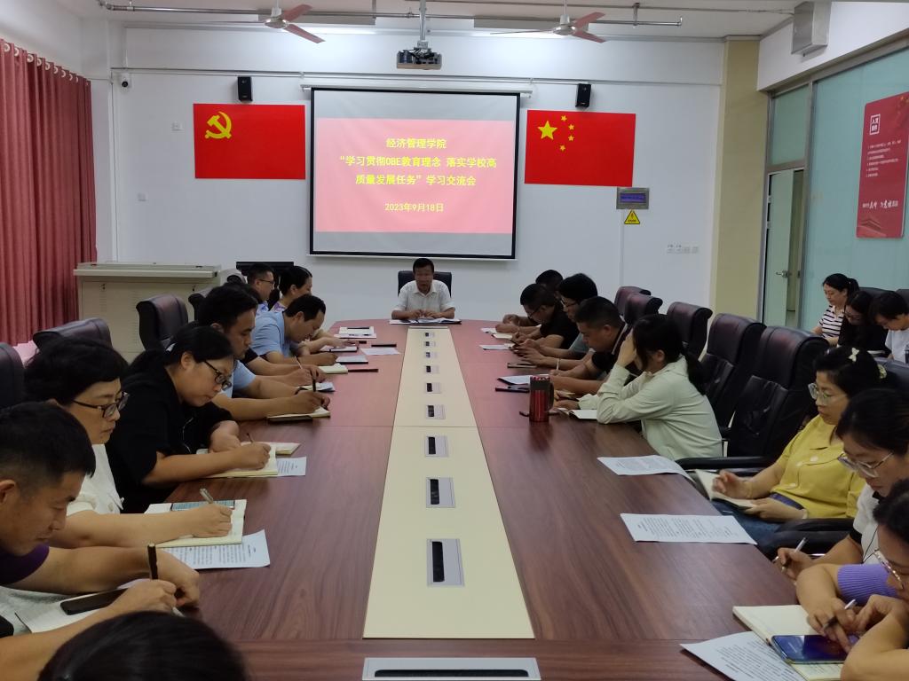 为进一步加强永利教师对OBE教育理念的理解,更好的以目标为导向指导日常教学管理工作,在学院内准确落地OBE教育理念,贯彻学校办学定位、教育理念和“三接九化”应用型人才培养模式,全力保障学校高质量发展任务的顺利完成。永利于9月18日下午在学院会议室组织召开了yl6809永利集团“学习贯彻OBE教育理念 落实学校高质量发展任务”的学习交流会。会议由院长于维同教授主持,永利科级以上干部出席了此次会议。