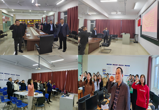 此次活动时间为10月4日至10月25日,活动分为两个层面进行,第一,由学院领导班子带领学院科级及以上干部开展教师宣誓活动,第二,由各科室负责人组织本科室全体教师开展教师宣誓活动。10月17日下午,学院院长带领学院科级及以上干部在学院会议室开展了教师宣誓活动。于院长指出,师德师风建设工作是提升教师队伍素质的基础性工作,是践行立德树人根本任务的基石性工作,各科室要高度重视本部门教职工的师德师风建设工作,要以教师宣誓为契机,提高全体教师的责任意识,将科室的师德师风建设工作做实、做细、做出成效。随后,各科室陆续开展教师宣誓活动。