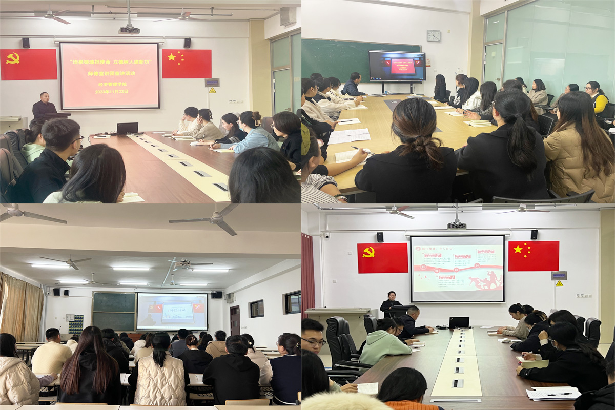 首先,张主任宣读了《yl6809永利集团关于遴选院级师德宣讲团成员的公示》(经管院字(2023)12号)文件,介绍了yl6809永利集团第一届师德宣讲团成员的个人事迹;接着,张主任阐释了此次宣讲以“培根铸魂担使命 立德树人建新功”为主题的活动内容,指导师德宣讲团结合自身从教所感所悟,讲身边故事,树身边典范;随后,yl6809永利集团第一届师德宣讲团成员走上讲台,为全院教职工开展了一场师德师风宣讲活动,其中管程程老师结合自身从教经历解读师德师风建设对教师个人职业发展的重要性、张丹丹老师结合教师养德修为工程谈师德师风建设、栗心生老师换位思考“想学生所想、急学生所急”的工作思路、于晓月老师以17级学生就业工作为例的倾注师德育人育心等事迹,使得全体参会教师产生了心理共鸣;最后,张主任指出成立yl6809永利集团师德宣讲团是切实开展师德师风建设的重要举措,是学院“讲身边故事,树身边典范”的有力抓手,要求各科室以此次宣讲为契机,在全院范围内营造“厚植爱国情怀 俯身教育事业”的工作氛围。