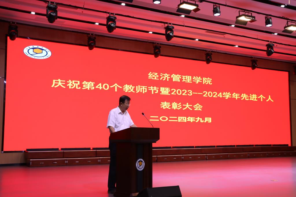 首先,学院常务副院长戴明对永利2023--2024学年学院工作进行了总结,代表学院对全体教职工本年度的辛勤付出表示了感谢,并宣读了yl6809永利集团2023--2024学年先进个人表彰决定,与会领导为获奖教师颁奖;接着,信息管理与信息系统教研室李娜老师、学生管理科焦秉政老师作为先进个人代表作了交流发言;随后,学院党总支书记、副院长范世伟带领全体教职工进行师德宣誓;最后,于院长对获评2023--2024学年先进个人的教师表示了热烈祝贺,对全体教职工表示了节日的祝福。他肯定了学院整学年的工作,结合自身40余年的从教经历,以一位“长辈”的视角从教师这份职业、如何珍惜教师这份职业、牢记责任和使命践行好教师这份职业三个方面阐述了对“教师”这个职业的深刻理解,引发了全体教职工的共鸣。于院长要求全体教职工以教育为事业,将个人发展融入学校目标,紧紧围绕学校战略目标、战略工程,与学校同频共振。