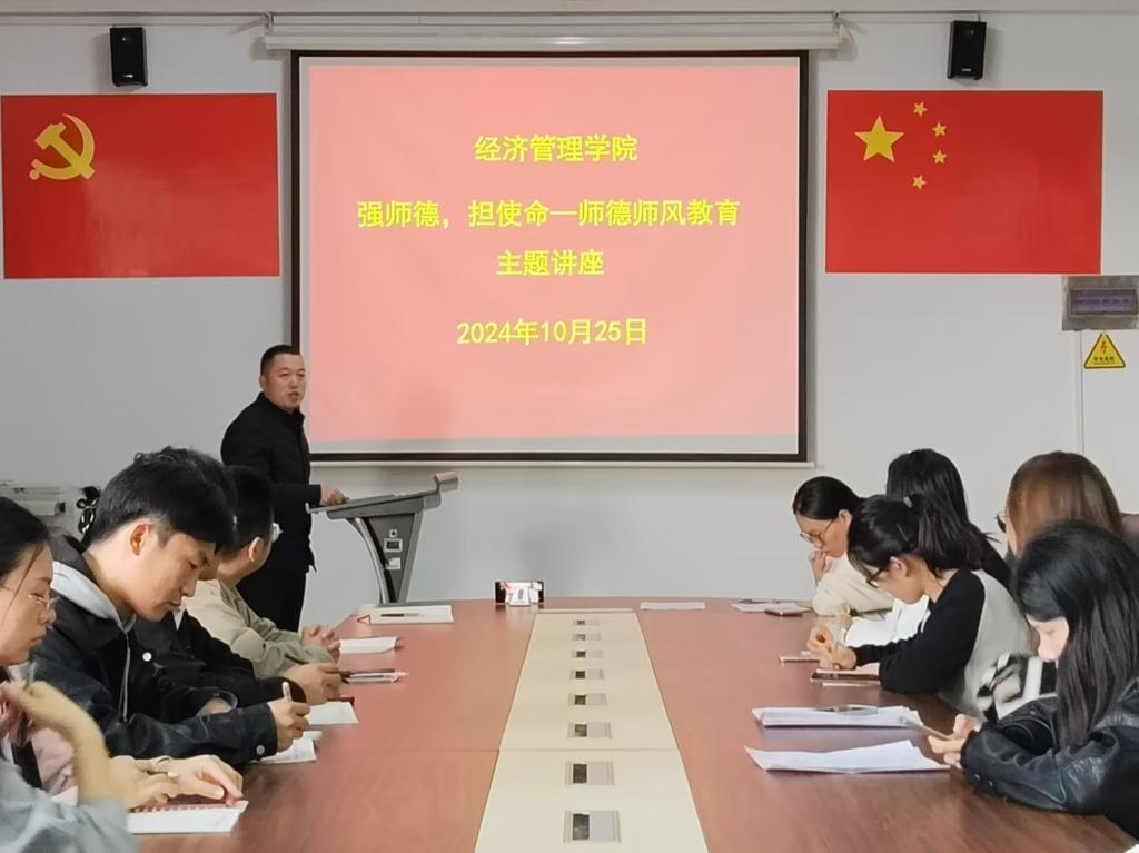 本次专题讲座,由我院综合科科长张莉超主持。首先,张莉超老师系统地阐述了学校整个师德师风建设体系和内容,指出师德师风专题教育在师德师风建设中的重要作用,强调了师德师风建设对提升自身师德素养的重要意义;接着,秦毅老师结合自己20年的从教经历,从负责任、求进取、乐共享、要攀比、敢创新五个方面讲述了“如何做新时代合格高校教师”,商务英语教研室秦毅老师的典型做法引发了参会老师的共鸣,“商英人”在教科研工作中不畏艰难、精益求精的精神使得全体老师受到激励;最后,张莉超老师指出开展师德师风建设是全面贯彻党的教育方针的需要,是学校高质量发展的需要,是提升自身师德素养落实立德树人根本任务的需要,希望全院教师要把握师德师风建设的关键点,明晰师德对于教书育人的重要性,树立正确价值观,俯身严谨治学。