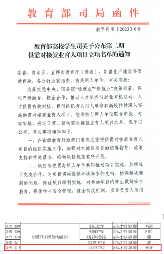 经过精心准备和科学论证,财务管理专业教研室主任魏正涛副教授与河南慧算账企业管理咨询有限公司联合的《职业能力导向下校企协同育人路径研究》项目,成功立项教育部第二期供需对接就业育人项目。该项目是永利全面落实学校“学生中心、需求导向、全面发展、产教融合”育人理念的重要体现,是学院开展产教融合工作的又一标志,为培养应用型人才与就业一站式服务开辟了创新渠道。