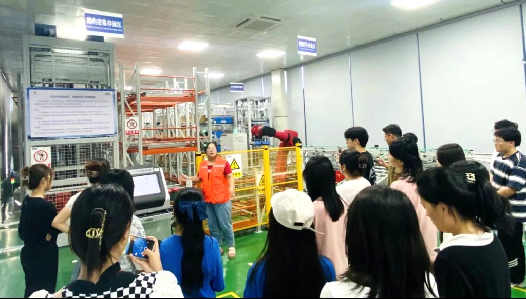 现场体验后,徐老师与同学们进行了简短的交流和互动。大家一起围绕“智慧无人仓设置了几个工位?这些工位需要做什么?怎么核算无人仓的运营成本?这与我所学专业有什么关联?”等问题进行了交流,并引导大家好好思考怎样进行科技创新,如何成长为应用型复合型的新时代高素质的人。