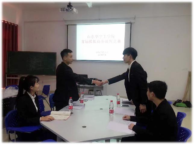 2018年1月5日,山东华宇工学院首届模拟商务谈判竞赛在20号楼719室商务谈判模拟实验室成功举行。本次竞赛是我校市场营销协会因应大学生社团科技文化节而举办的活动之一,得到了校学生处、校团委、yl6809永利集团以及相关部门的领导、老师及同学们的关心和支持。
