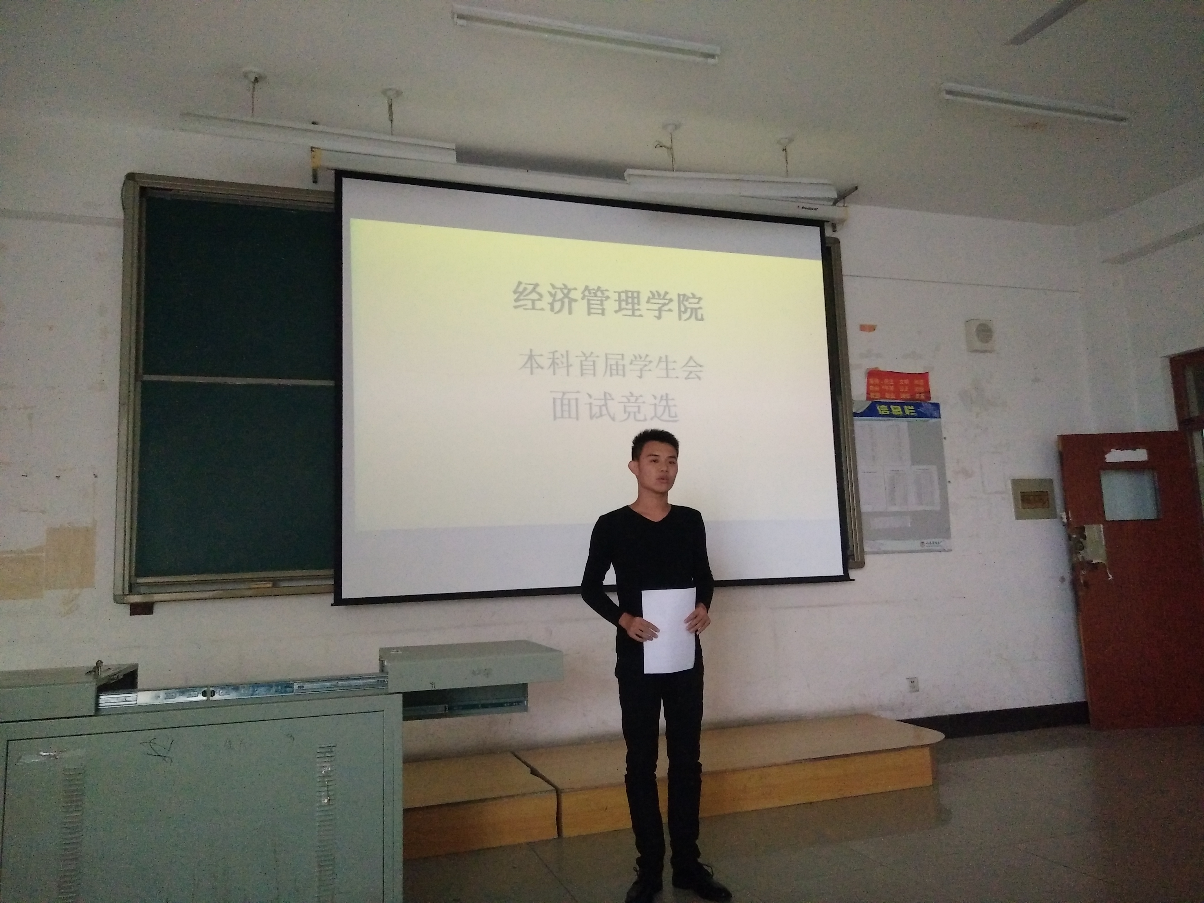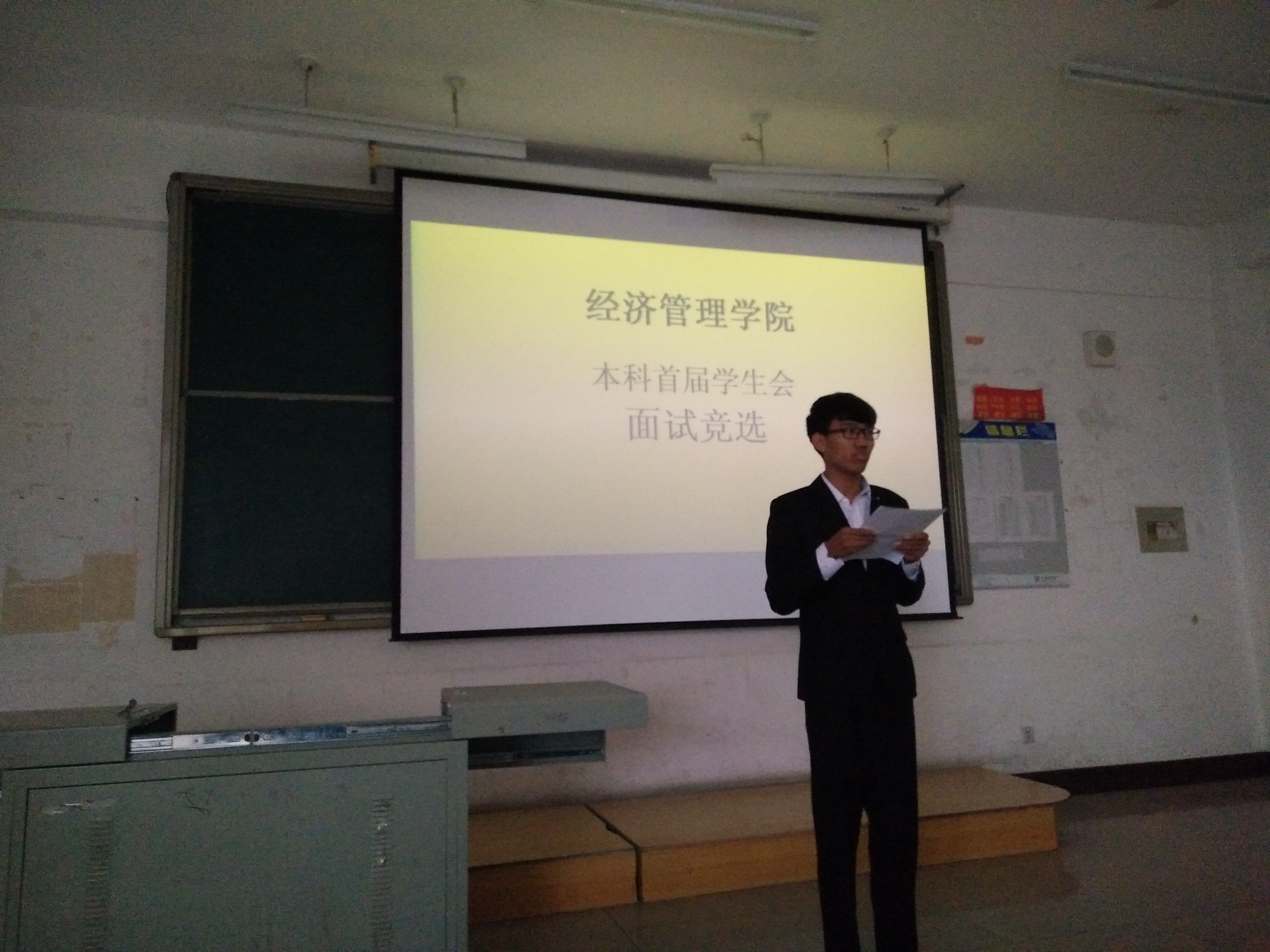 竞聘正式开始前。首先由范世伟老师发表讲话,他简明扼要的指出了成立本科学生会的必要性及意义,并指出本科生与专科生有很多不同之处,作为本科生,更应该加强自我管理能力,由此带动本科专业课的学习和项目的研究,同时宣布本科学生会的具体部门:本科学生会下属秘书处、纪检部、学习部、宿管部、实践部、文体部、宣传部、生活部、组织部九个部门,并详细说明了各个部门的具体职责。并强调,本科学生会要积极参与院的各项活动,组织策划具有本科班特色的活动,展现本科生风采。