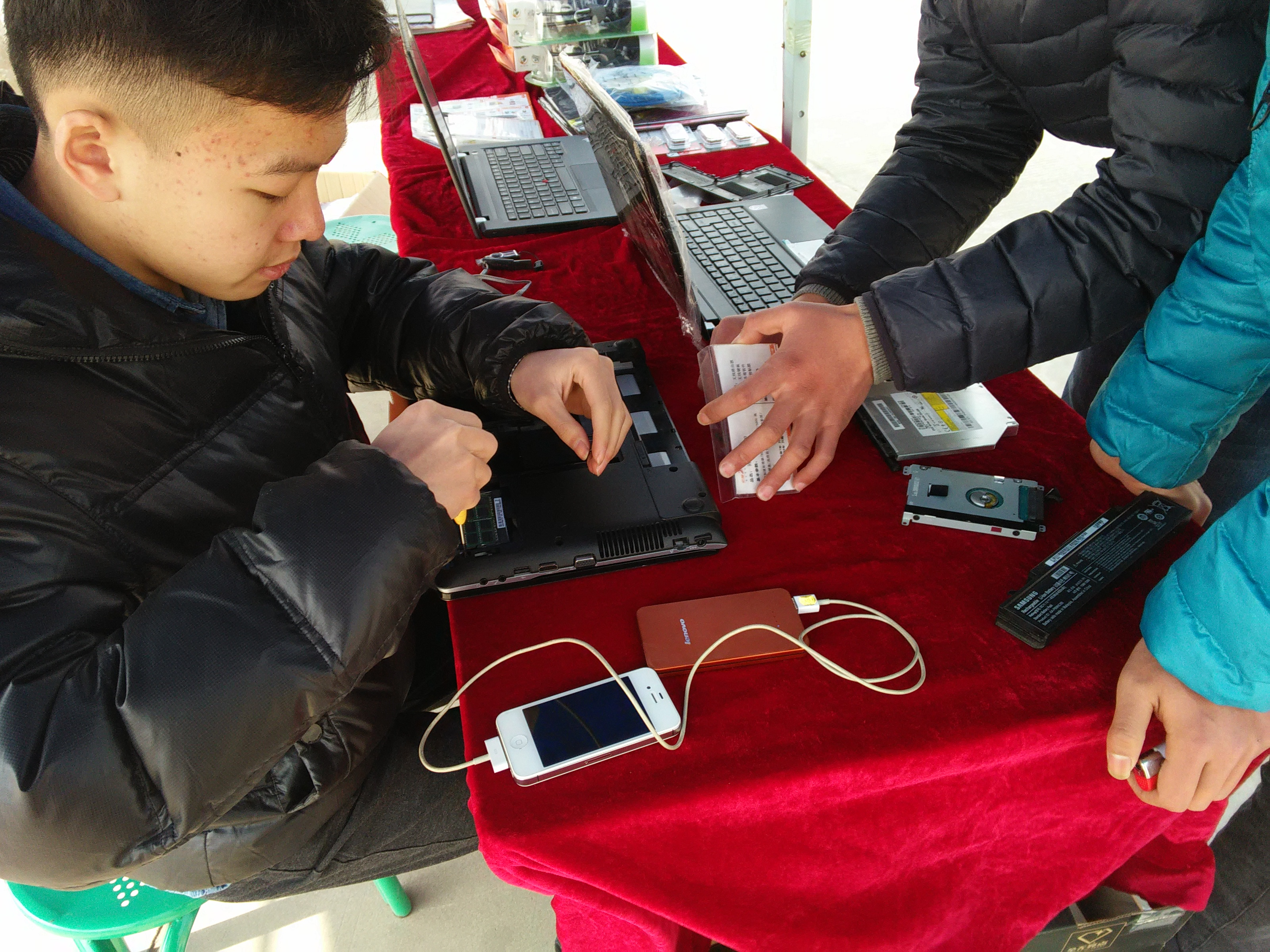 活动前我系学生会同学发海报、张贴条幅进行活动宣传,3月14日上午,我系学生会同学协助亿维数码广场的工作人员将器械设备和桌椅布置妥当,之后引导学院需要电脑清理、维修的师生到达活动现场进行清理和维修。