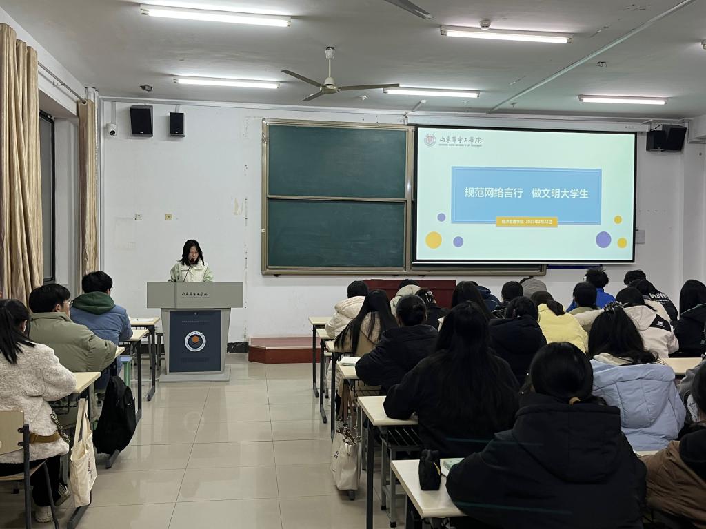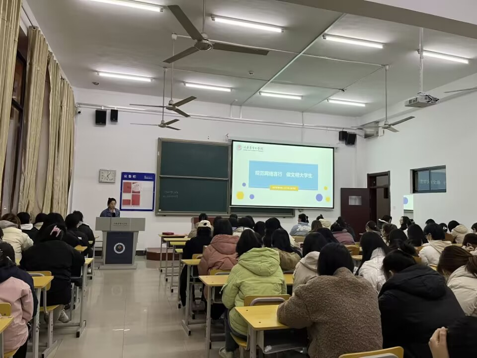 本次主题班会活动由各班级辅导员负责组织开展班会伊始,辅导员对当前的互联网大环境进行了分析,阐述了网络是一把双刃剑。班会过程中引用了多个大学生真实的案例强调了网络不是法外之地,警醒学生们要正确辨别网络信息,知法守法,文明上网,理性发言。最后辅导员们从如何做到网络言行规范提出了几点建议,倡导同学们要遵守网络文明公约,争做文明大学生。