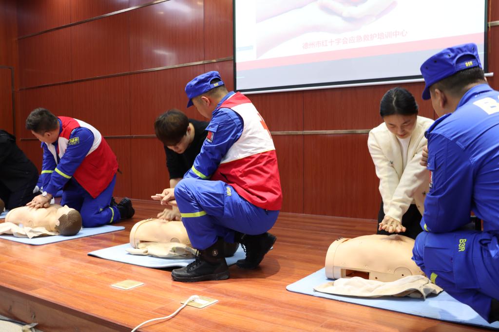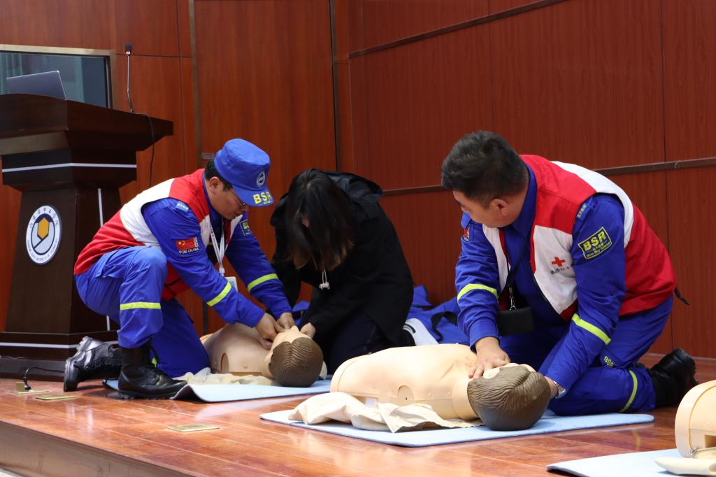 会上,德州市红十字蓝天救援队队长助理刘坤作了应急处置专题理论讲座重点讲解了心肺复苏、创伤救护、海姆立克急救法、异物梗阻等关键急救知识辅导员代表上台进行现场实际操作演练,将所学的急救知识和技能通过实际操作进一步巩固