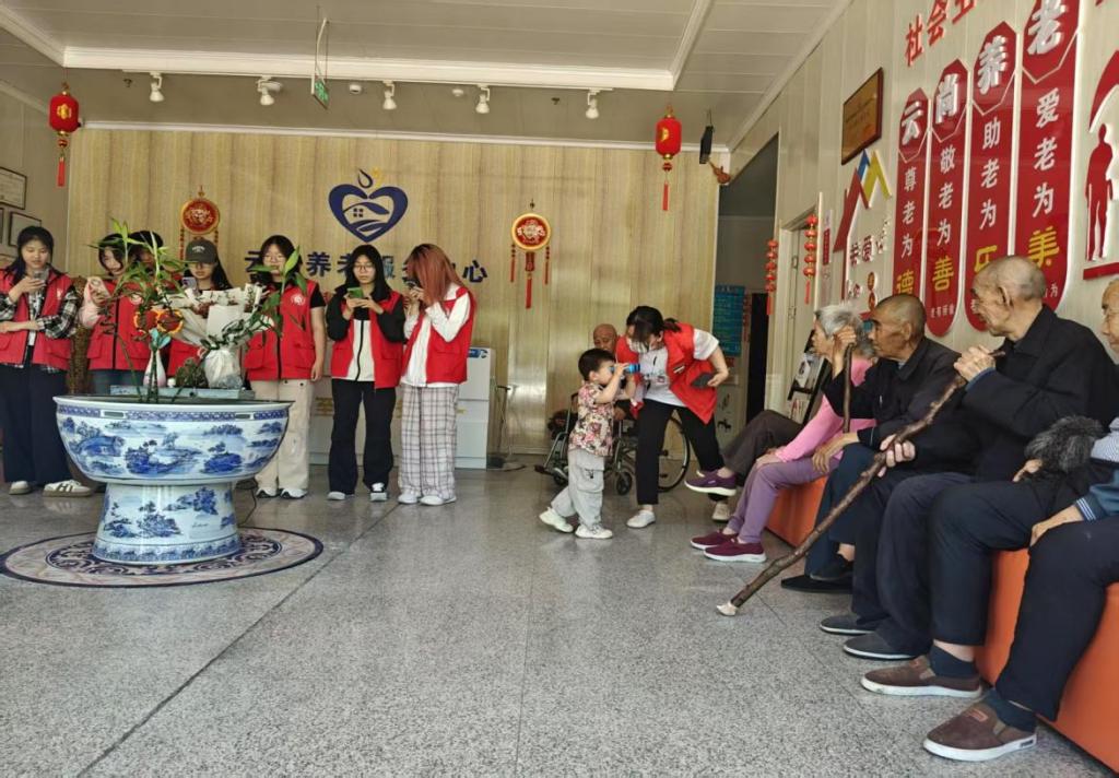 活动现场,志愿者们与老人围坐在一起,笑容温暖,话语轻柔。他们耐心倾听老人们诉说年少时的奋斗故事,以及生活中的点滴温情,不时点头回应。老人们沉浸在回忆里,沧桑的面容上满是感慨,那些承载着时光印记的往事,在温馨的对话中缓缓流淌,勾勒出岁月的轮廓,让现场氛围格外温暖动人。其次,志愿者们为老人们精心筹备了文艺汇演,在经典红歌的合唱环节中,老人们轻轻打着节拍并轻声附和,引发共鸣。