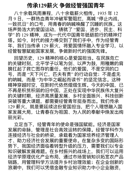 第二课堂|“传承一二・九薪火,争做经管强国青年”征文主题团日活动