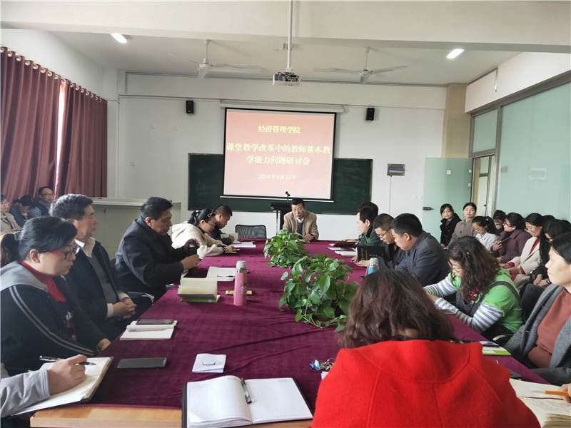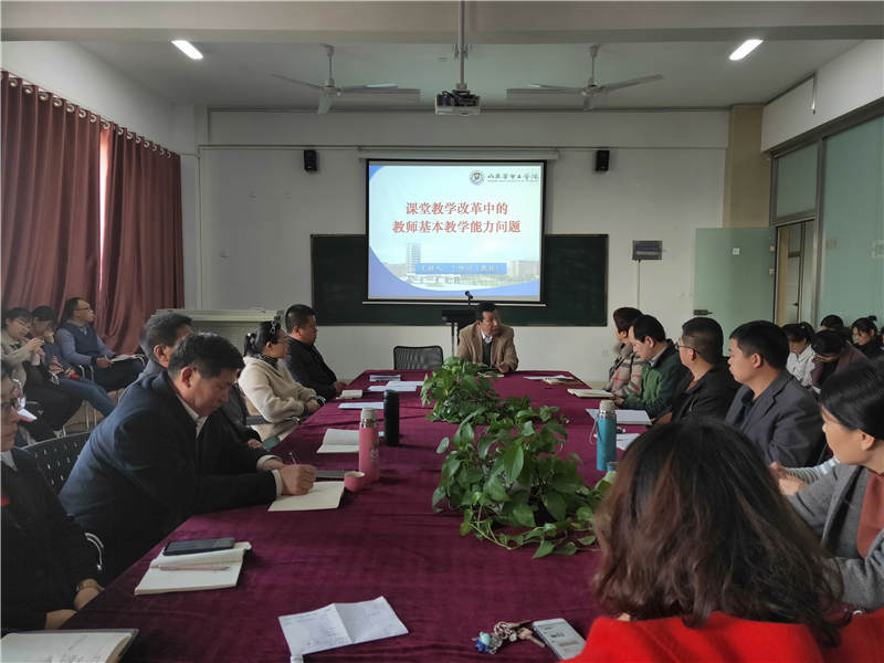 研讨会上,院长于维同首先就课堂教学改革的意义向全体教师进行了阐述,他指出,大学的教育教学改革,提高人才培养质量,如果不落实到课堂教学上,不落实到教师的每一堂课的教学进程中,不落实到每个学生的学习上,教学改革就知识一句空话。受传统教学模式的影响,不少教师习惯于“一本书”、“一言堂”的表演式教学,在这种思维的影响下,教师的教学激情出现不同程度的倦怠,课堂教学改革已经成为整个教学改革的重心。其次,院长于维同就“课堂教学改革中教师基本教学能力问题”同全体教师进行了研讨。于院长首先对我校教学改革的现状进行了分析;其次,指出了课堂教学改革的必然;再次,于院长就课堂教学改革中教师应该具备的基本教学能力进行了阐述,他指出,任课教师应该具备课堂教学的课程设计能力、提升研究学生学习的能力、把控课堂的能力、设计和组织课堂语言的能力、善于担任课堂导演的能力。最后,于院长从以下十个方面就教师应该怎样进行课堂教学设计发表了看法,一是要注重课堂教学中的第一次课的设计;二是课堂教学中首次课后的每次课的第一堂课的设计;三是本次课的教学内容和重、难点设计;四是设计学生的学习;五是设计教学方法的运用;六是设计好课堂教学活动与组织实施;七是设计课堂教学考评方式方法;八是设计好课堂教学板书与PPT教学的衔接;九是设计好课程教学大纲、教学计划;十是设计好教案的撰写。