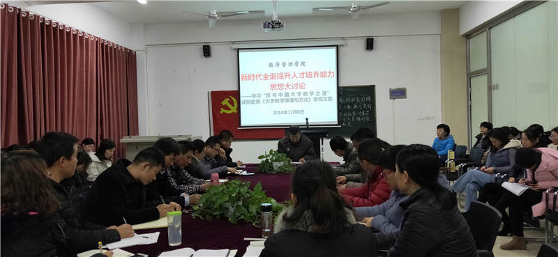 研讨会上,院长于维同首先带领全体教师学习了李均“探寻中国大学教学之道,读别敦荣《大学教学原理与方法》”一文,文章中提到的“走向实践哲学、教学模式的改革、关注做中学、改革一本书的大学、建设一流本科”等观点引起各位老师的共鸣。在此基础上,永利五个本科专业的教研室主任及教研室代表就本次主题“如何推进永利合格本科专业建设”各抒己见,首先阐述了本科学士学位评估的重要性,其次将本教研室的情况与本科教学工作合格评估指标体系进行比对,找出本教研室在建设合格本科专业方面存在的差距,最后提出了具体的解决措施。活动最后,院长于维同作了总结发言,他认为,各位教研室主任及教研室代表对本科教学工作合格评估指标体系的内容已经有了很深的理解,在找出本教研室不足的基础上,提出了具体的解决措施。院长于维同向全体教师提出三点要求:第一,每位教师要认真学习本科教学工作合格评估指标体系,从教学大纲、教案、课堂、作业、试卷等各个教学环节严格按照此指标体系进行组织;第二,按照此指标体系,找出自身存在的短板,进行改正;第三,依照此指标体系,明确前进的方向。