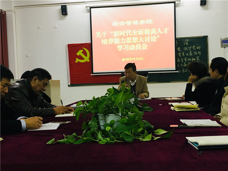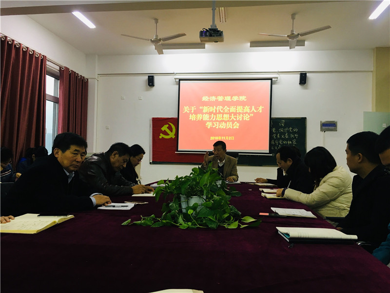启动仪式上,院长于维同宣读了《关于开展“新时代全面提高人才培养能力思想大讨论”的学习活动方案》,明确了学习讨论的目的和指导思想,本次活动共分为四个阶段,院长于维同对各阶段学习讨论内容和时间安排做出具体安排,要求各教研室、科室和中心要提高思想认识,精心组织,合理安排;个人自学要有笔记,集体学习讨论要有记录,并做好相关材料整理、留存工作。最后,院长于维同要求全体教师做到以下几点:第一要坚持正确的办学方向;第二要强化每一位教师的立德树人意识;第三要为本科生参与科研创造条件;第四要坚持把师德师风作为教师素质评价的第一标准,切实加强永利集团建设;第五要推动课堂教学革命;第六要及时调整专业人才培养方案,科学构建课程体系,努力培养高质量的本科专业经管人才。第七,落实学校2017-2018学年教学工作会议精神,以评促建、以评促改、评建结合、重在建设,实现本科教学水平评估达标。