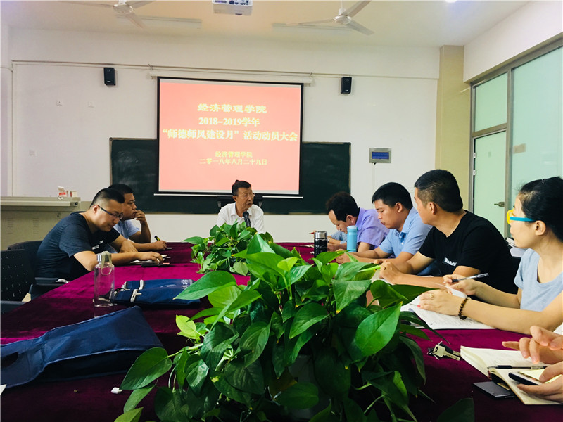 为落实学校鲁华宇院校办字〔2018〕30 号文件精神,提高教师队伍整体素质,引导永利教师做有理想信念、有道德情操、有扎实学识、有仁爱之心的党和人民满意的好老师,大力加强师德建设,努力造就一支师德高尚、业务精湛、结构合理、充满活力的高素质专业化教师队伍,永利自8-9月份开展“师德师风建设月”活动。8月29日上午,“师德师风建设月”活动动员大会在20号楼712召开,院长于维同主持会议,经管学院全体教师参加了会议。