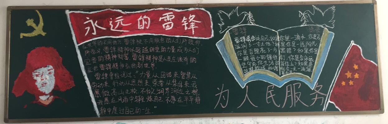 此次黑板报评选活动旨在,将弘扬雷锋精神与践行社会主义核心价值观结合在一起,倡导学生以雷锋精神为镜,学习雷锋的优秀行为品质,掘弃个人不良习惯;以雷锋精神为起点,不断学习,切实践行社会主义核心价值观。