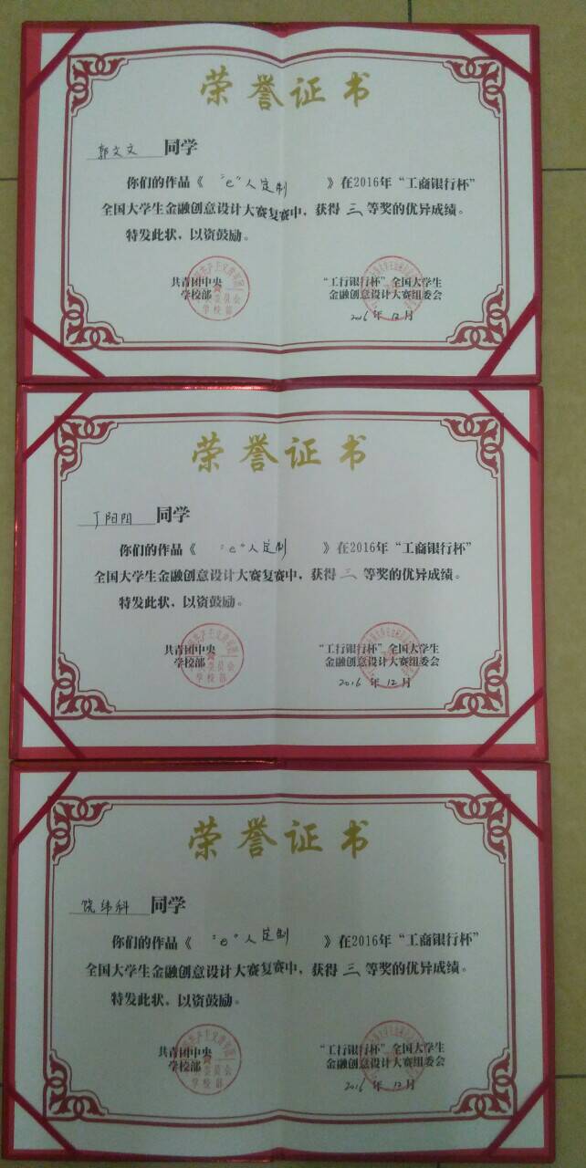 12月6日,由共青团中央指导、中国工商银行主办的2016年“工商银行杯”全国大学生金融创意设计大赛五大片区复赛在南京大学举行。由yl6809永利集团学生丁阳阳、饶纬科、郭文文创作的“e人定制”获全国三等奖。