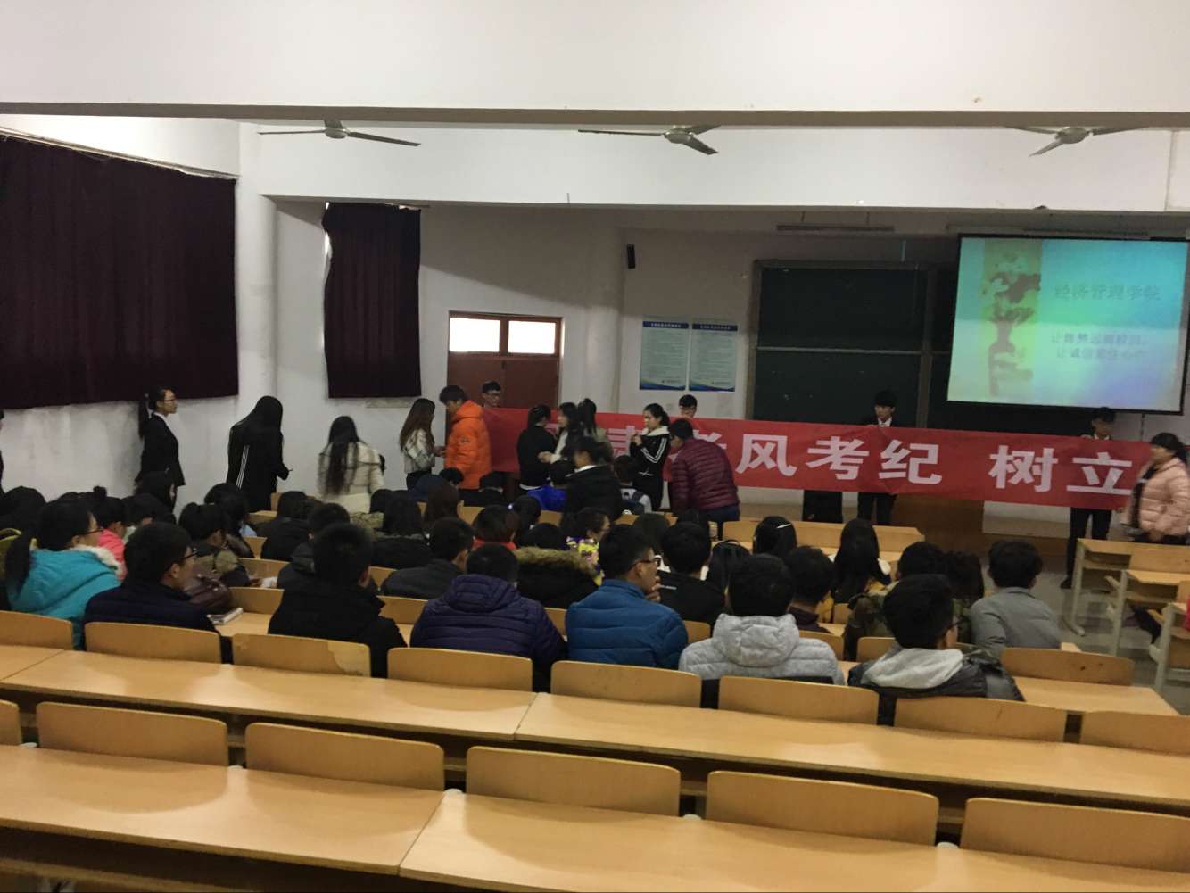 为进一步贯彻落实学院《关于加强教风学风建设的工作意见》和深入强化社会主义核心价值观中的诚信教育。2016年12月20日,下午16时,yl6809永利集团在10号楼F401举办“严肃考风考纪,树立优良学风”宣誓签名活动。经管学院800余名师生参与了此次活动。