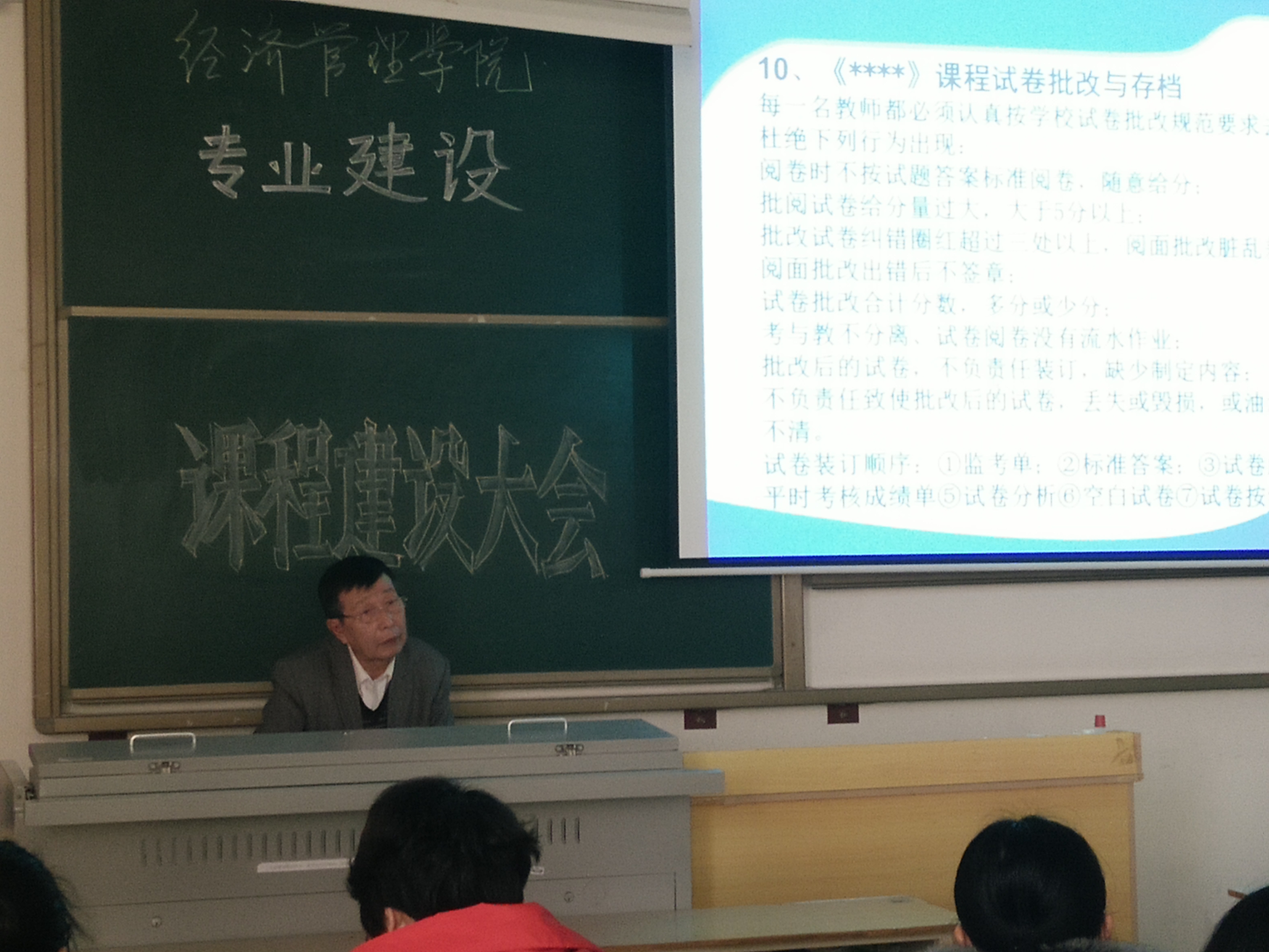为提高yl6809永利集团课程建设水平,推进课程教学模式改革,3月 3日下午,在 10 号楼 302 教室,院长于维同做了课程建设专题讲座,经管学院全院教职工参加了会议。