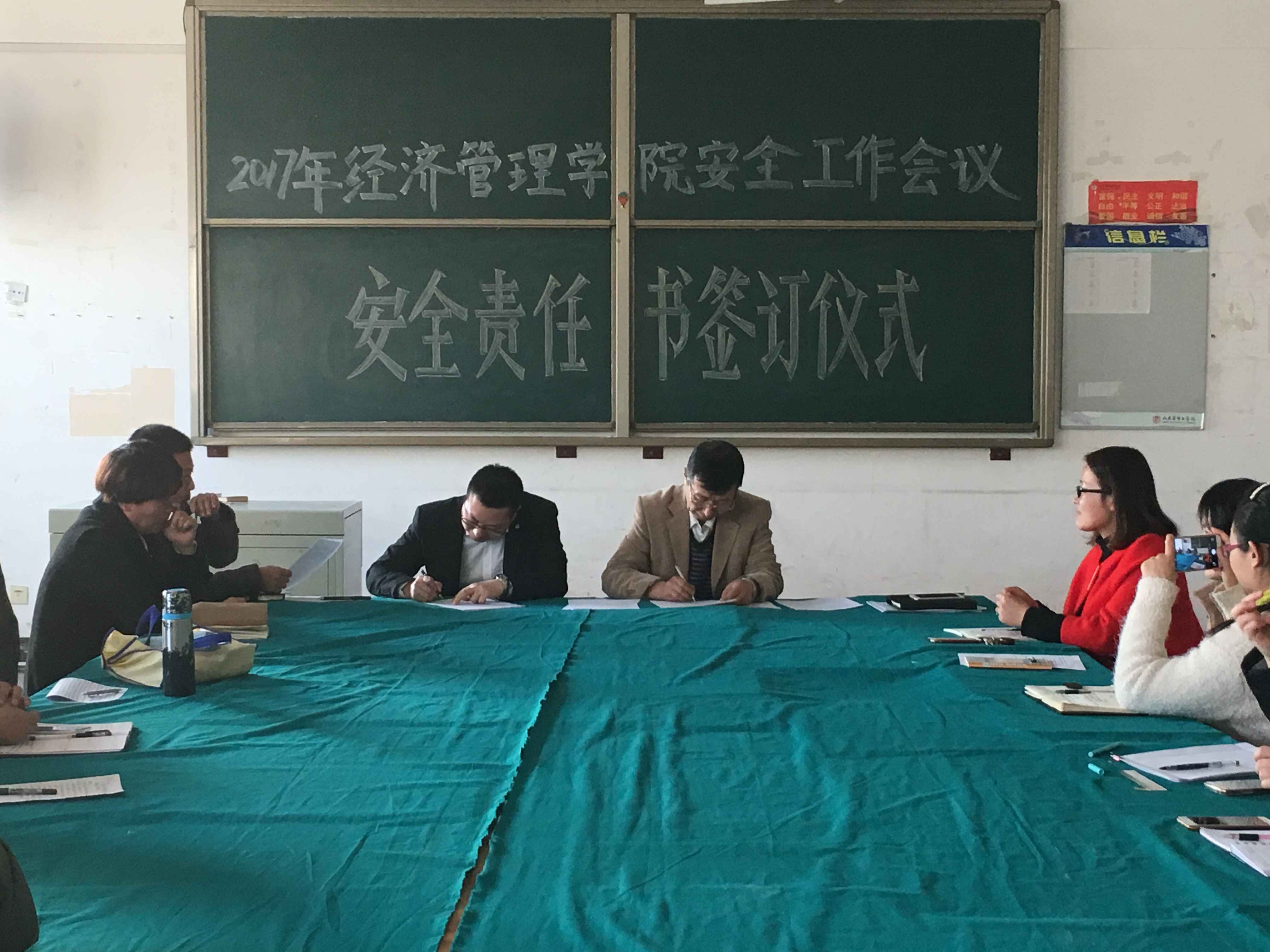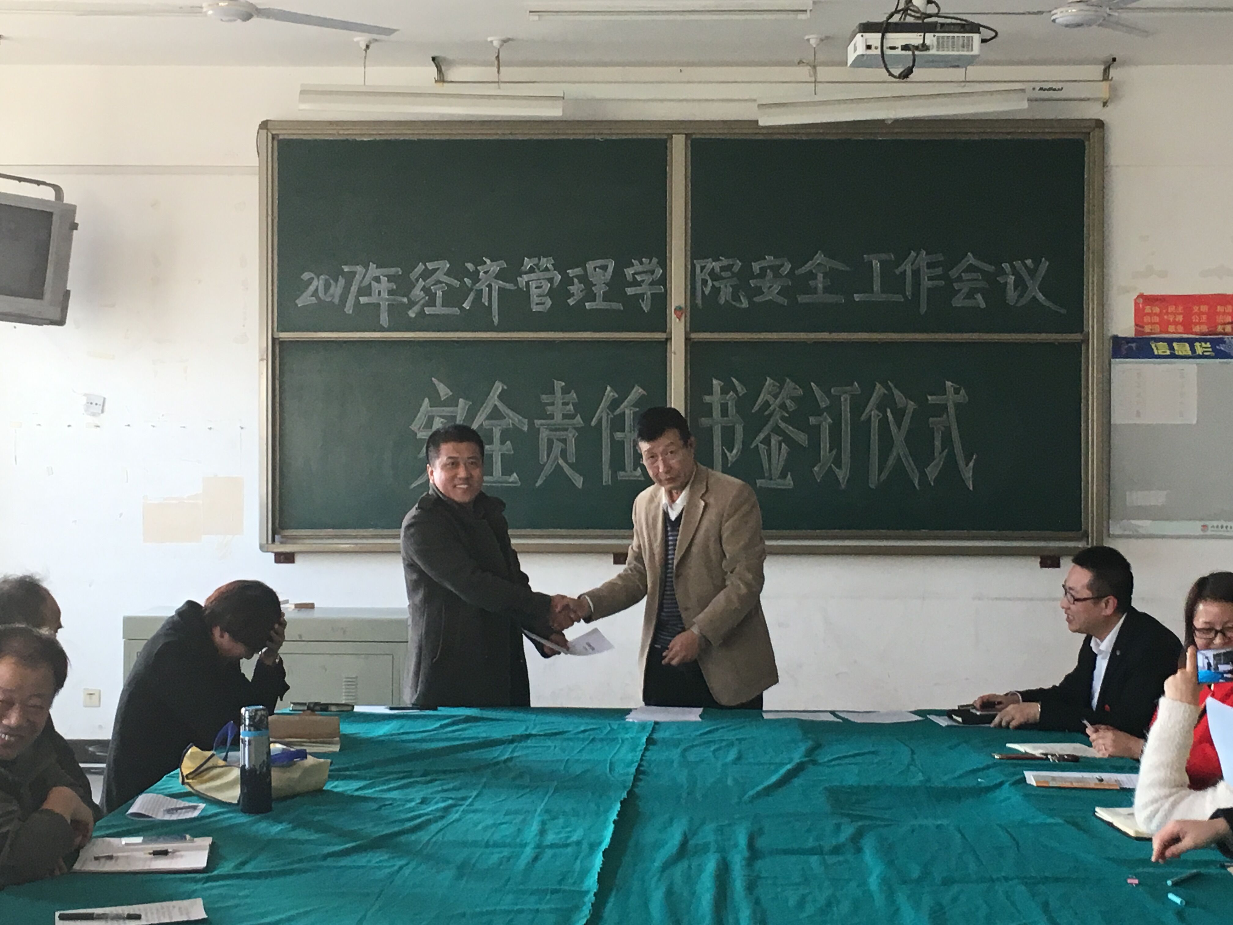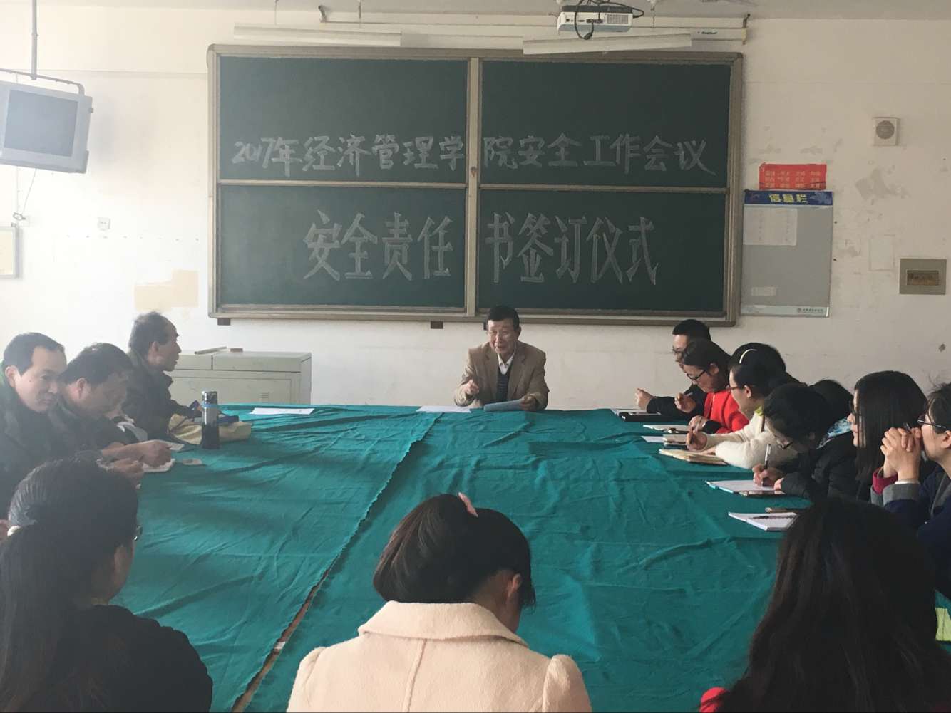 经管院长于维同教授向全院教职工介绍了《2017年yl6809永利集团安全目标责任书》主要内容,他指出,2016年,在学校领导的正确领导下,在全院师生的共同努力下,永利未发生任何安全责任事故,有效维护了广大师生生命财产安全和学院的正常秩序,为学院的健康发展提供了有力保障。他要求全院教职工要认真学习贯彻习近平总书记在全国高校思想政治工作会议上提出的“要坚持不懈推进高校和谐稳定,培育理性平和的健康心态,加大人文关怀和心理疏导,把高校建设成安定团结的模范之地”的总要求,学习校领导在学校《2017年安全工作会议》上的讲话精神,进一步提高思想认识,落实工作责任,深入开展安全隐患排查整治,不断强化学社的安全教育管理,进一步完善校、院、班三级心理健康教育体系,努力营造和谐稳定的良好校园环境,为平安校园和和谐校园建设作出应有的贡献。