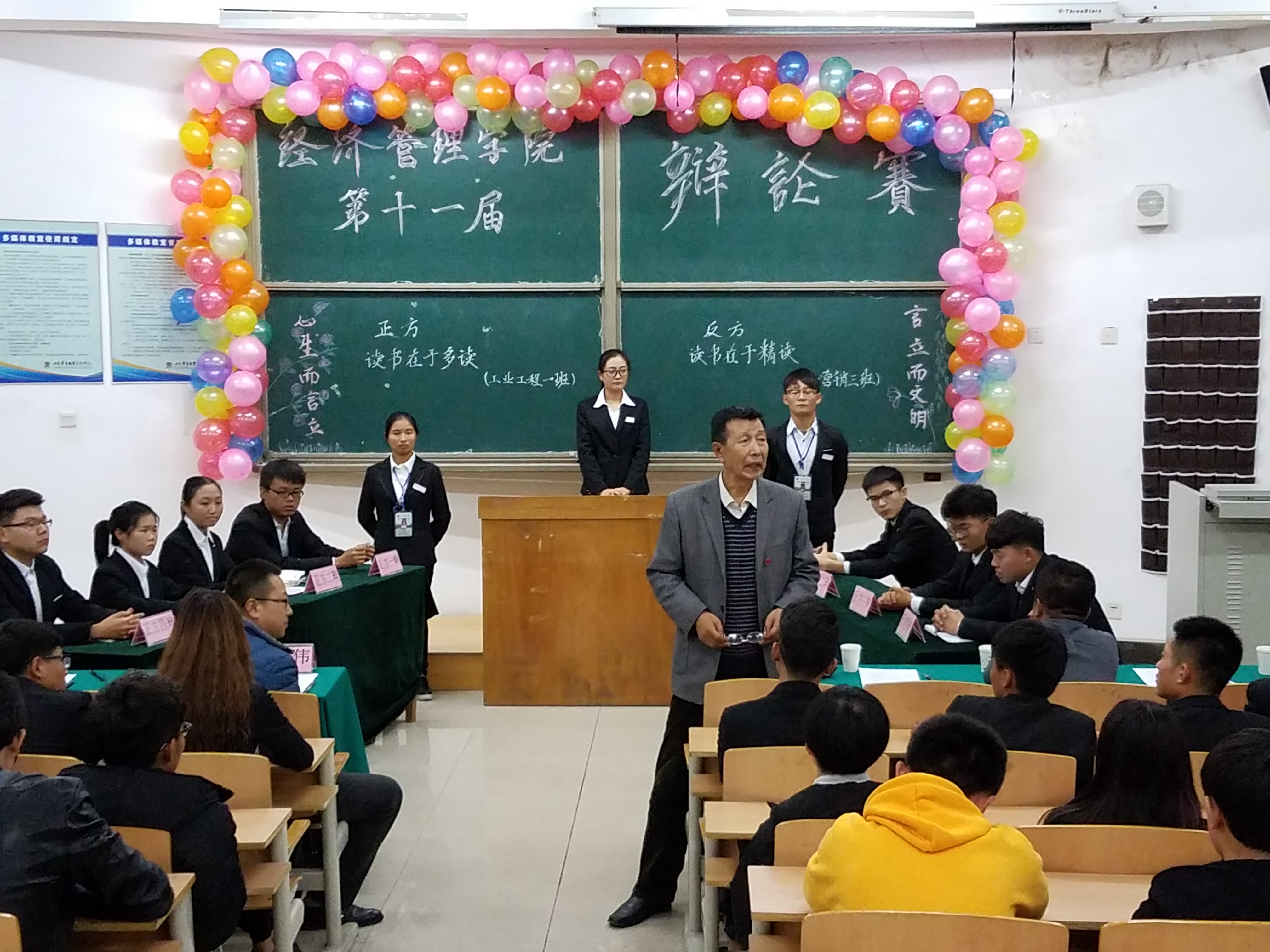 为进一步贯彻落实《山东华宇工学院2016年“学风建设月”活动实施方案》和《yl6809永利集团教风学风建设的实施方案》,丰富经管学院学生课余生活,活跃校园文化,培养学生团结、竞争、进取的精神,展现经管学子风采,促进经管学院学风建设。11月15日,yl6809永利集团“第十一届辩论赛”,在10号楼F401开赛,经管学院院长于维同教授,院长助理范世伟,院长助理戴明,16级本科辅导员杨增凯出席了本次开幕赛。