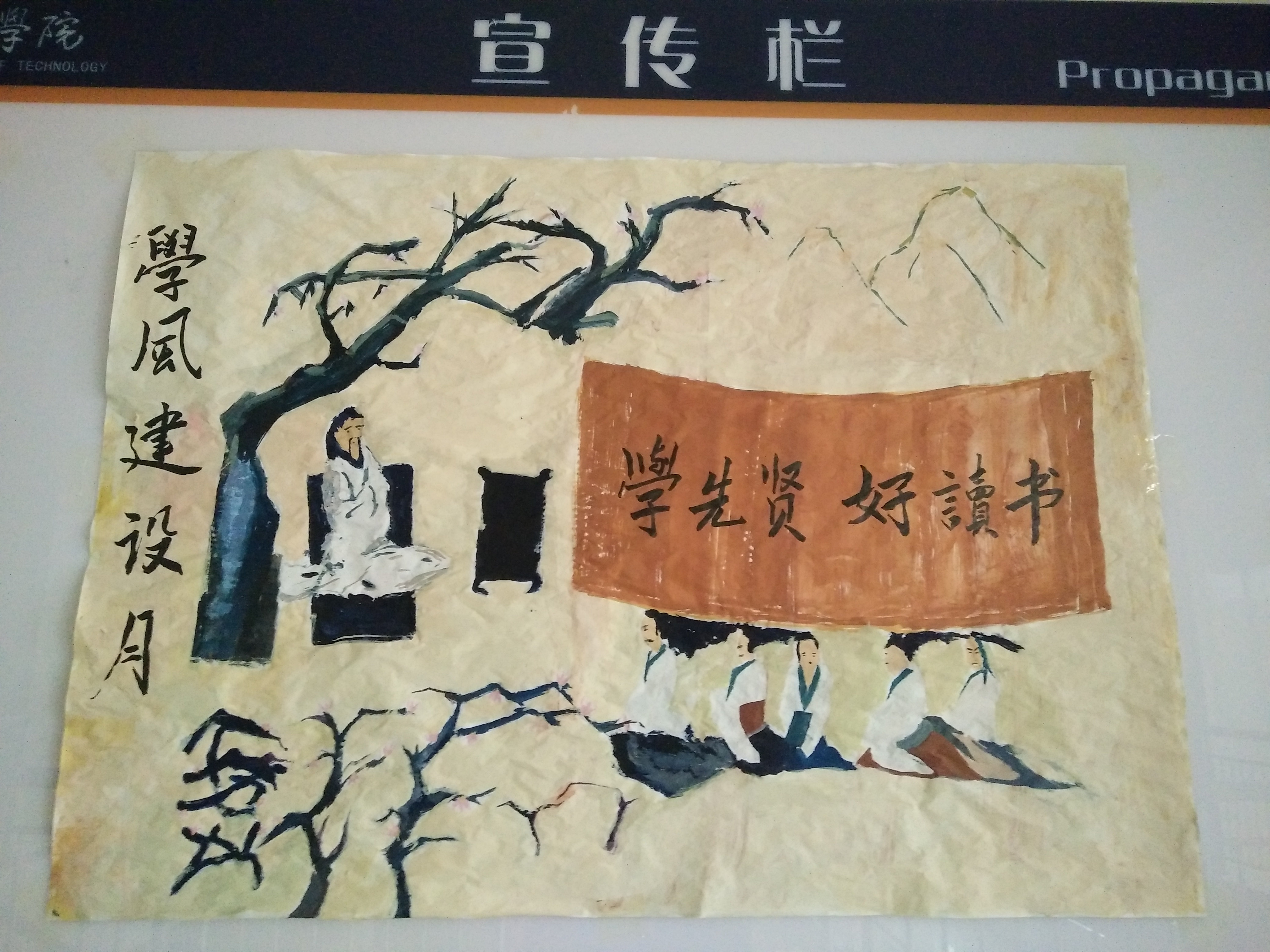 为宣传贯彻好“学先贤,好读书”活动,永利积极发挥宣传栏及班级板报的宣传作用。通过张贴宣传海报,绘制黑板报宣传“学先贤,好读书”活动。同时,各年级辅导员先后两次召开“好读书”主题班会宣传“学先贤,好读书”活动,学院二级网站也积极宣传本次活动,对本次活动进行全方位、多层次、多角度的宣传动员。