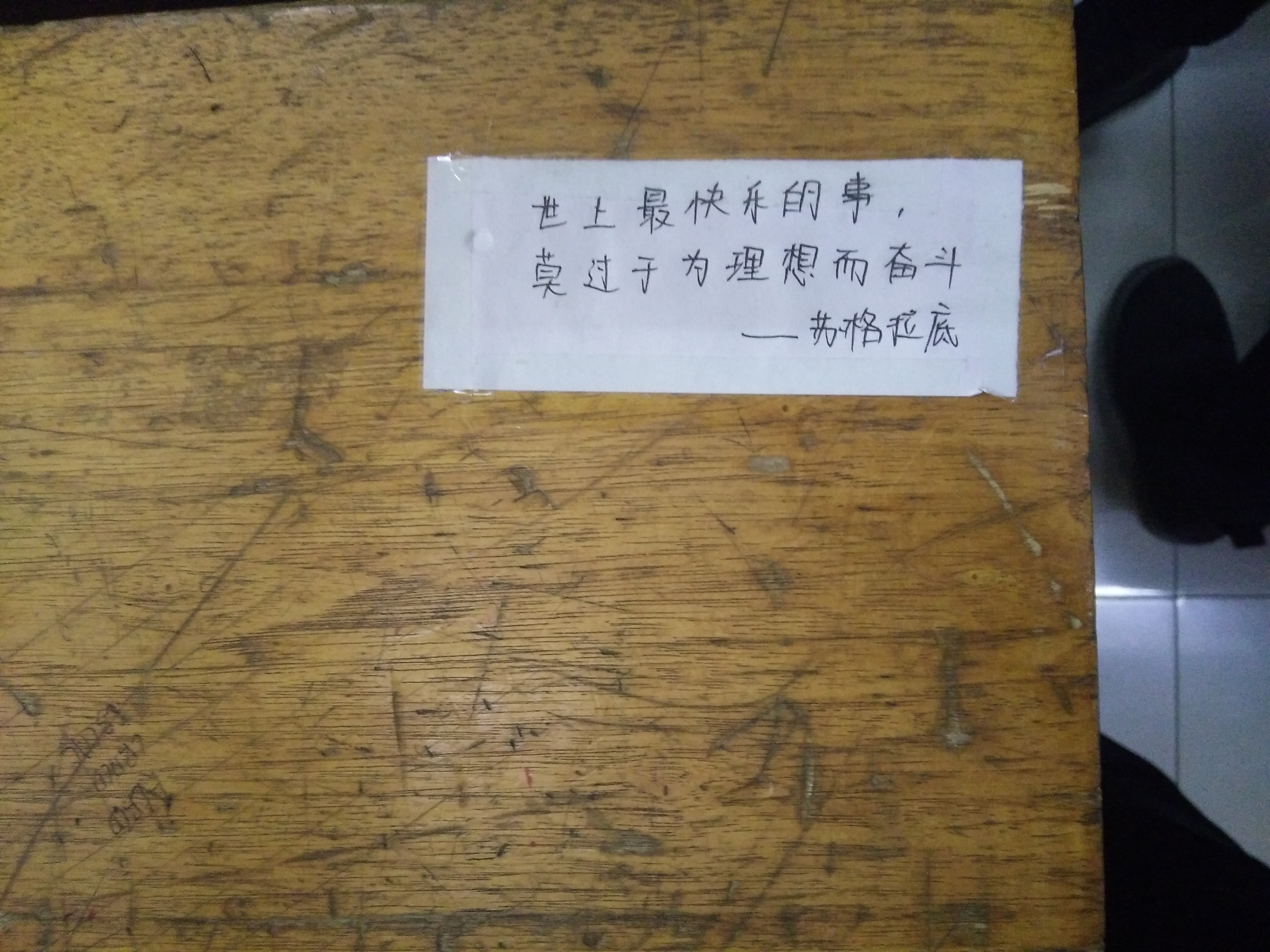 为认真贯彻落实《山东华宇工学院关于加强教风学风建设工作的意见》和《山东华宇工学院2016年教风学风建设月实施方案》的要求,全面推进学风建设工作,不断深化学院“勤奋 扎实 刻苦 坚毅”的良好学风,经管学院开展摘抄名言警句、活动并将个人信奉的一句名言警句以座右铭的形式张贴在课桌上,时刻督促自己,提醒自己。