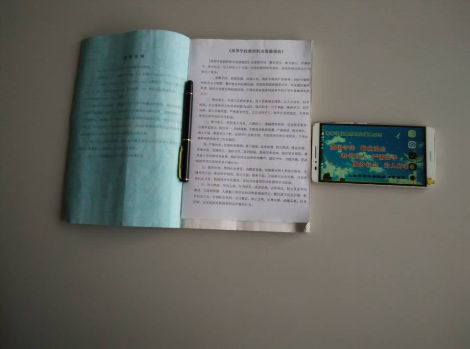 为认真贯彻落实《学院关于加强教风学风建设工作的意见》和《学院2015年教风学风建设实施方案》的要求,全面推进教风建设工作,不断深化学院“用心灵教书 以大爱育人”的良好教风,经管系所有教师将《高等学校教师职业道德规范》以图片的形式设置为个人手机壁纸,并且所有学管人员将《高等学校教师职业道德规范》粘贴在了辅导员工作日志首页。