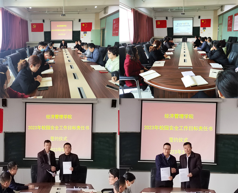 首先,与会人员共同观看了学校2022年安全工作视频;接着,学院党总支书记、学院副院长范世伟做了2022年安全稳定工作总结,总结全面概括了yl6809永利集团2022年安全工作的具体措施、取得的成效、存在的问题,并就2023年学院安全工作进行了系统部署;随后,学院院长于维同教授分别与两位副院长签订了yl6809永利集团2023年校园安全工作目标责任书;最后,于院长要求,一是要明确责任,各科室要严格按照学校要求落实责任制,全体教师要高度重视安全稳定工作,种好自身责任田;二是要注重舆情引导,各科室负责人要引导本科室教职工“不信谣 不传谣”,弘扬正能量,营造风清气正的工作氛围;三是严格落实安全制度规定,对安全隐患做出预判和处理预案,不定期组织安全检查,确立大安全意识,确保全年无安全责任事故发生。