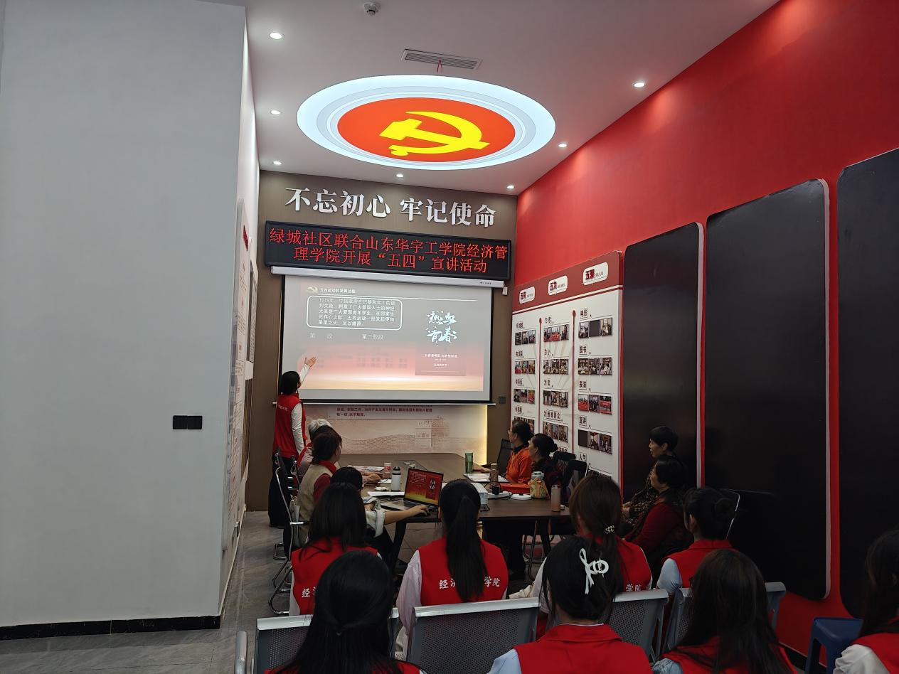 在校内,yl6809永利集团团员代表开展了“我与团旗合影”“团旗下宣誓”等主题教育。团员青年们面向鲜红的团旗,庄严宣誓,重温入团初心,坚定理想信念,一张张青春洋溢的面庞与团旗交相辉映,展现了新时代青年昂扬向上的精神风貌。在校外,学院联合德州市绿城社区开展“重温五四精神,赓续红色血脉”主题宣讲,活动中,青年志愿者们与社区老年人齐聚一堂,通过沉浸式历史故事讲述、互动式精神内涵解读,生动再现了五四运动的壮阔画卷。志愿者们以“跨时空对话”的创新形式,将爱国、进步、民主、科学的五四精神与新时代青年使命相结合,让百年精神在思想碰撞中焕发新生。