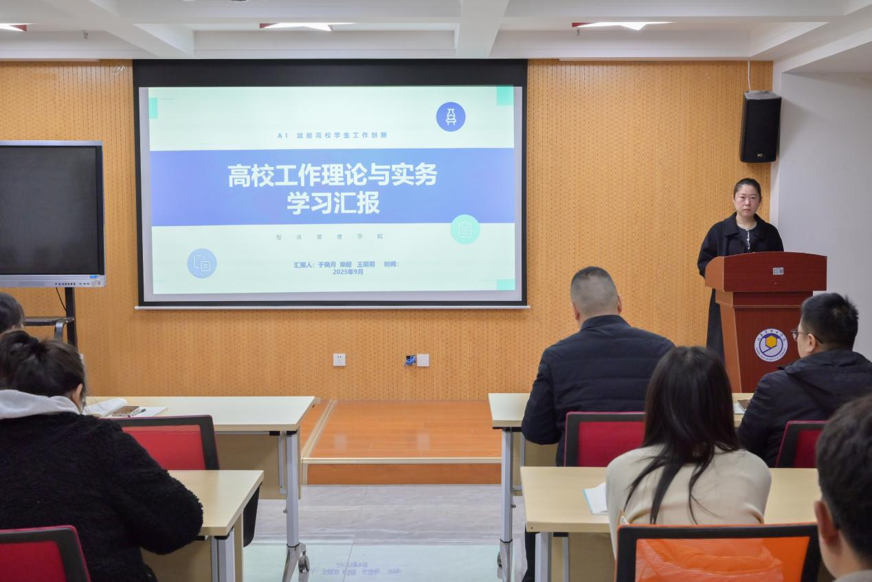 本期沙龙由于晓月老师主讲,她围绕AI技术在学生工作中的实践应用、辅导员数字素养提升路径等核心内容展开分享,引导在场辅导员进一步深化对人工智能战略价值的认知,清晰把握科学革命带来的多维影响,深刻领悟人工智能时代高校思政工作的“变”与“不变”。老师们在交流中达成共识,既要坚守育人初心的“基本盘”,又要下足深耕细作的“笨功夫”,在持续提升理论素养的同时,不断打磨基础业务能力。分享环节后,柴建老师、王萌萌老师结合自身工作实践,围绕班级管理中的AI技术应用场景与实操经验分享了个人感悟,引发全场共鸣。