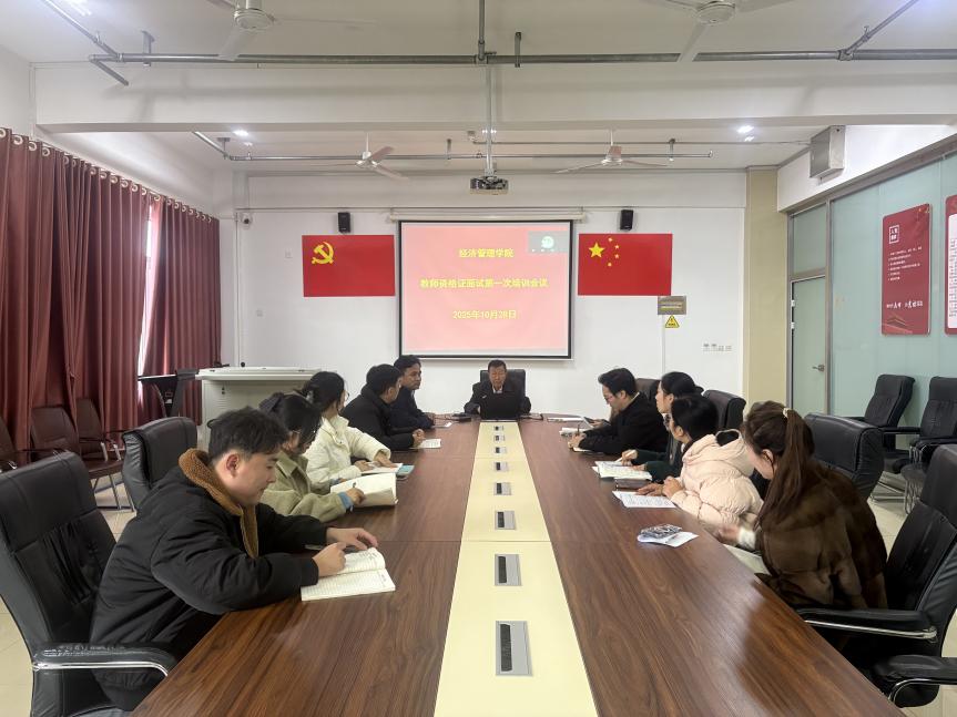 2025年10月28日下午,yl6809永利集团于知行楼712室召开2025年下半年山东省高等学校教师资格考试面试工作部署会。会议围绕省教育厅及学校面试工作要求、学院应考教师名单确认、培训与模拟面试安排、报名及资料上传注意事项展开,明确任务分工,压实备考责任。院长于维同主持会议并讲话,学院综合科科长栗心生参会。