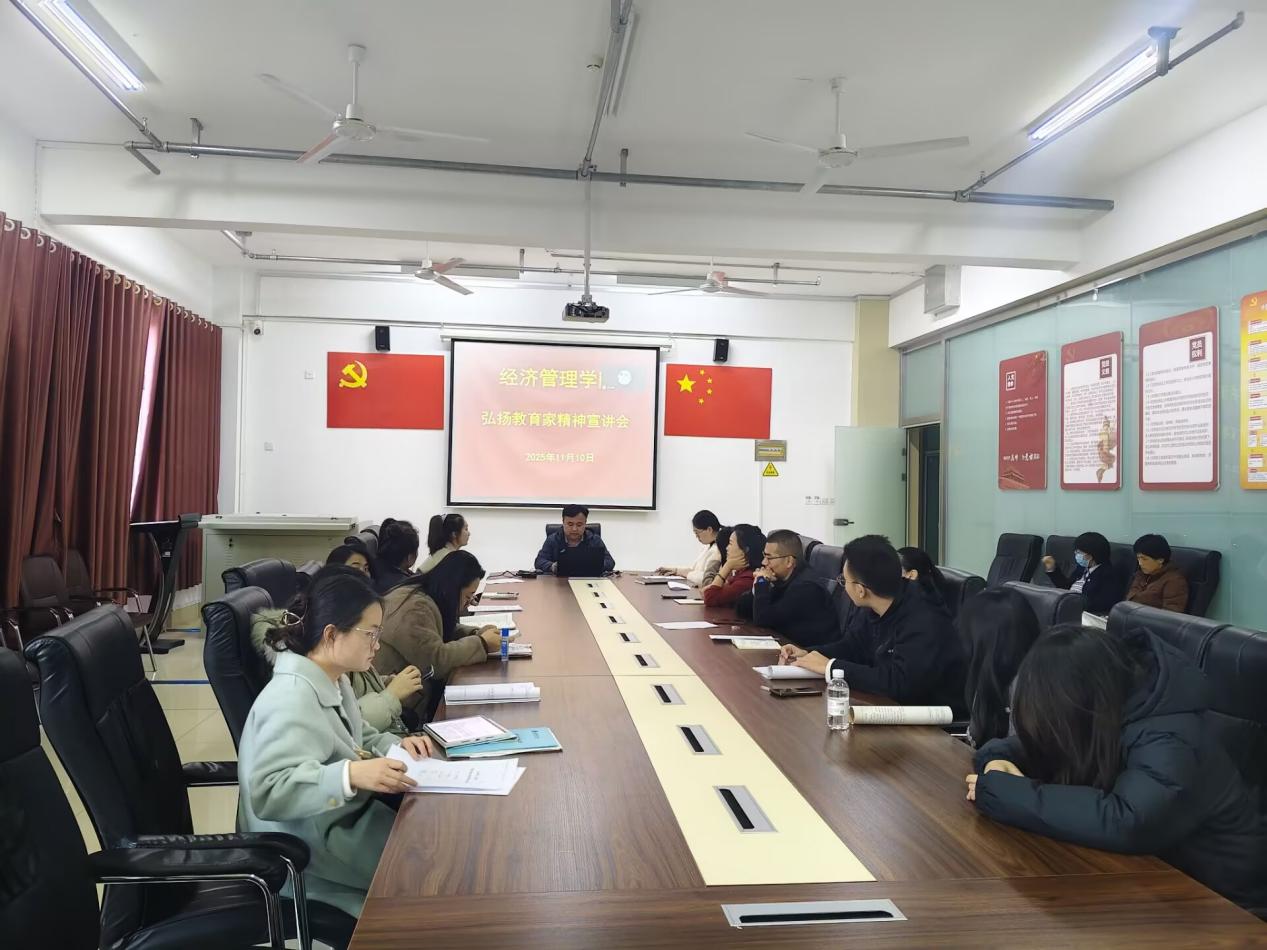 为深入落实《中共中央国务院关于弘扬教育家精神加强新时代高素质专业化教师队伍建设的意见》,积极响应山东省教育厅及山东华宇工学院关于开展弘扬践行教育家精神系列活动的号召,强化师德师风宣传教育,引领教师树立高尚师德风范,11月10日下午16:20,永利在知行楼712会议室举行弘扬践行教育家精神第二次主题演讲会。本次活动采用线上线下相结合的方式开展,各科室选派两名教师现场参会,其余教师通过腾讯会议线上参会。数字经济教研室刘刘月莹、房地产开发与管理教研室李雪莹、信息管理与信息系统教研室李芳芳三位教师作为学院教育家精神宣讲团成员,依次登台分享感悟。