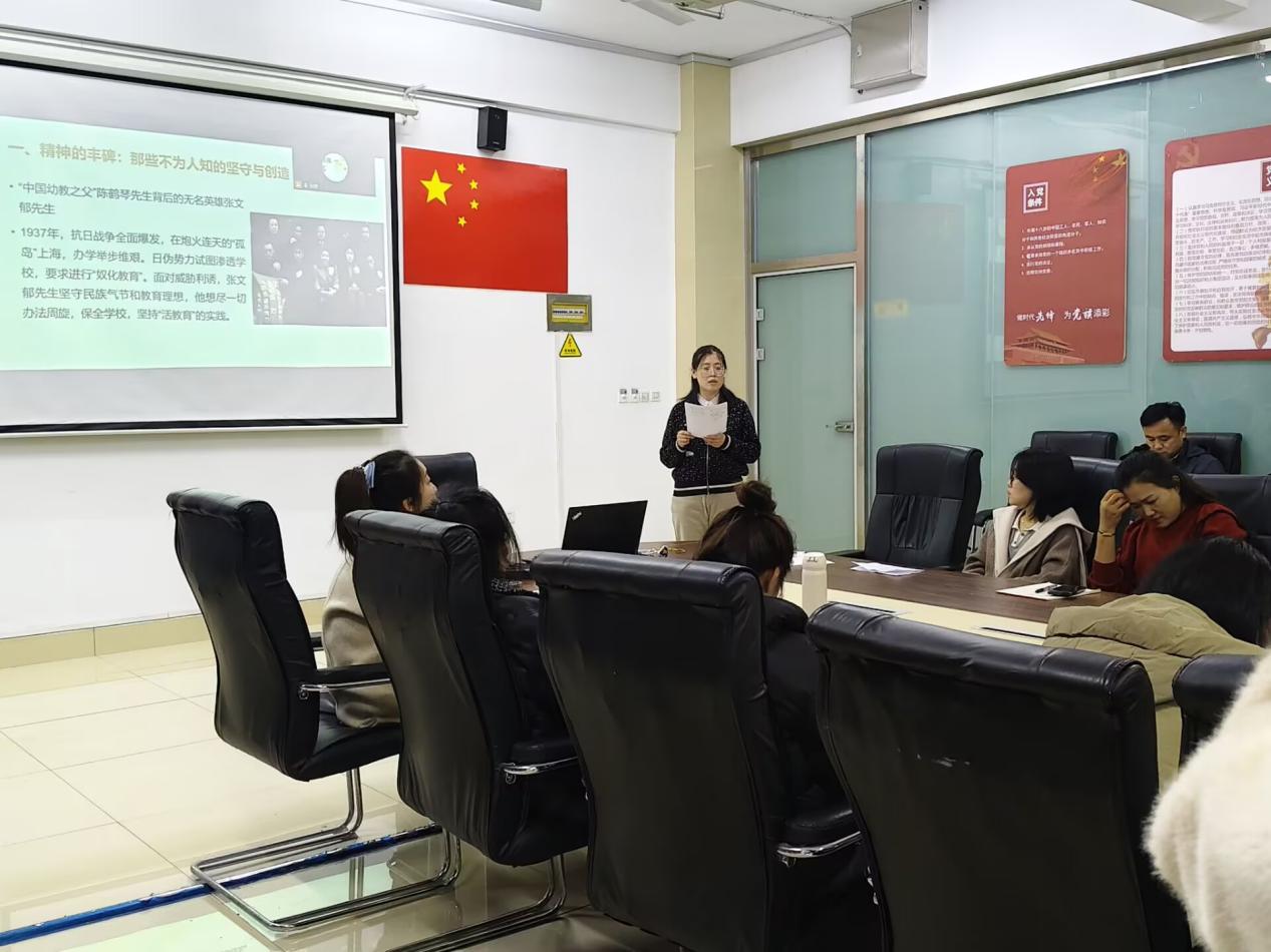 房地产开发与管理教研室李雪莹老师围绕《弘扬教育家精神,做新时代的“大先生”》展开分享,深入解读了教育家精神的六大核心维度。她结合古今教育先贤的育人理念与支月英老师坚守山区教育的感人事例,从精心备课、耐心辅导、用心家校沟通等方面,给出了教育家精神在日常教学中的实践路径,其分享兼具理论高度与实践温度,引发在场教师强烈共鸣。