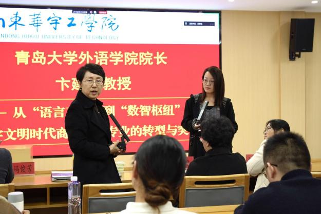 2025年11月14日下午,12号楼学术报告厅201内座无虚席,永利特邀请青岛大学外语学院卞建华教授,作题为“从‘语言工具’到‘数智枢纽’:数字文明时代商务英语专业的转型与突围”的专题学术讲座。永利商务英语专业全体教师及各年级学生代表参加此次讲座,共同探寻专业发展新路径。
