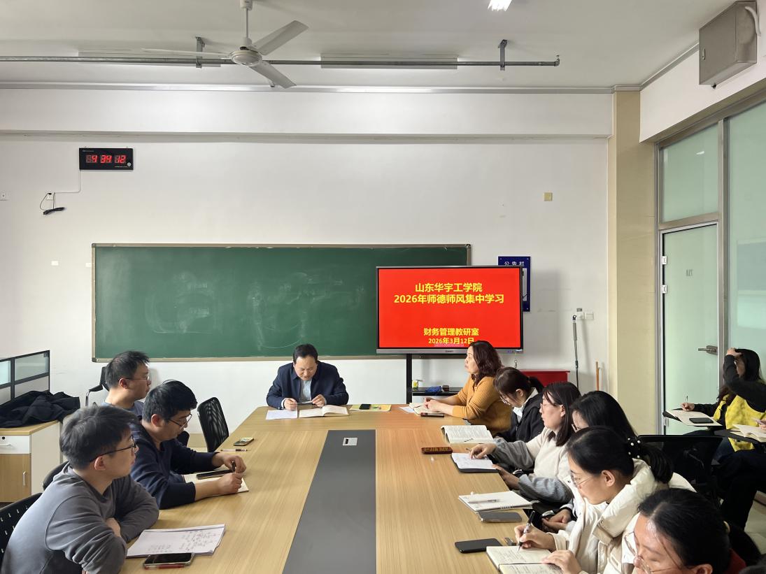为深入贯彻落实山东华宇工学院2026年师德师风建设工作要求,进一步强化教师师德修养,规范职业行为,筑牢育人思想根基,3月12日,财务管理教研室在知行楼718会议室召开师德师风集中学习研讨会。教研室主任魏正涛主持会议,财务管理教研室全体教师参会学习、深入研讨。