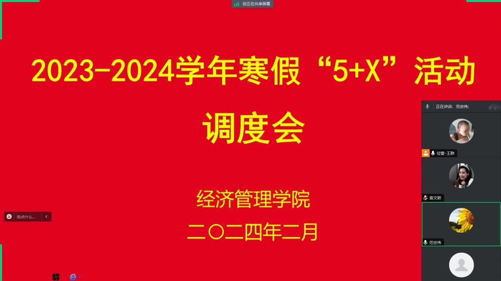 为了扎实推进永利寒假“5+X”活动的有序开展,全面掌握寒假期间各班级“5+X”活动的开展情况,永利于2月19日上午召开了2023-2024学年寒假“5+X”活动开展情况调度会。本次会议由团总支书记王群主持,党总支书记、副院长范世伟、学管科长王敏以及全体辅导员参加了此次会议。